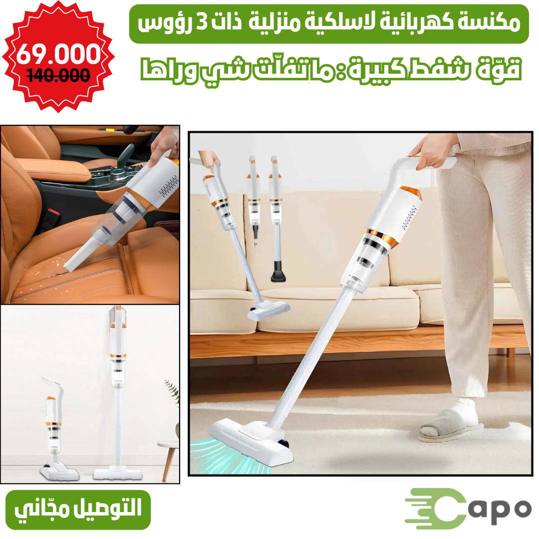 مكنسة كهربائية لاسلكية منزلية متعددة الرؤوس (3 رؤوس)